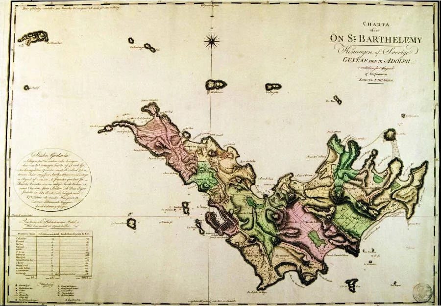 Det kortvariga och misslyckade kolonialprojektet Cabo Corso avskräckte inte Sverige från att göra ett nytt försök drygt hundra år senare, denna gång på den lilla karibiska ön Saint-Barthélemy. Ön hade kolonialiserats av Frankrike 1648, men 1784 gick fransmännen med på att låta Sverige ta över styret i utbyte mot nederlagsrätt i Göteborg.